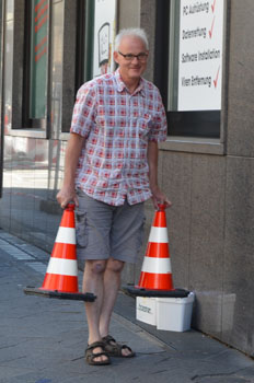 Werner Degreif räumt noch Absperrhütchen weg, soll sich doch niemand