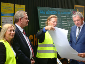 Wunschliste der Mannheimer, auf einem großen Plakat ausgedruckt, nimmt er