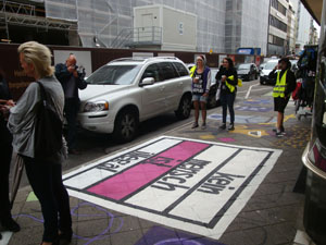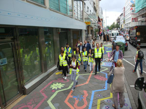 zur Übergabe an die Stadt. Die malenden Schüler sind mit ihren