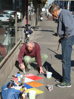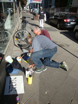 das Pflaster gebracht. Die benutzten Schablonen werden an Helmut Mück, den