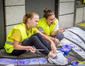 Sie sind mit viel Freude dabei und bunt wie ihre Malerei