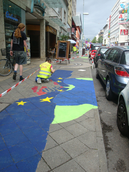 sind pünktlich vor Ort am Kunstwagen in der Fressgasse.