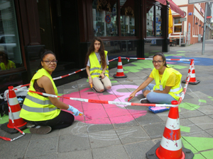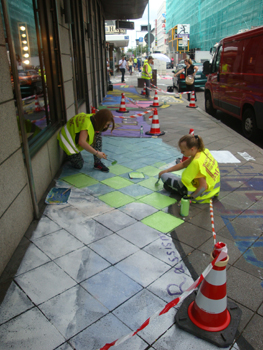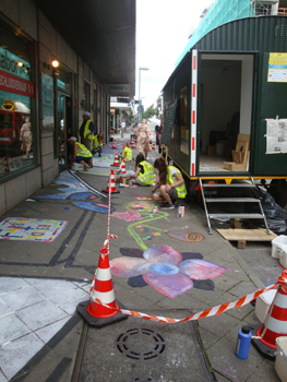 organisiert. Wer morgens zuerst da ist, fängt an den Kunstwagen