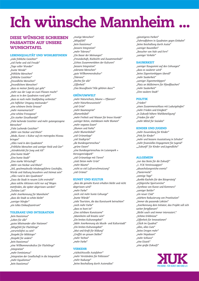 Die Wünsche im Einzelnen wurden OB Dr. Peter Kurz als Poster überreicht: